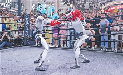 宇樹科技的人形機械人在停止格斗賽。